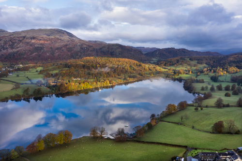An 8 km long lake 7 km west of Hawkshead village and 13 km west of Ambleside.