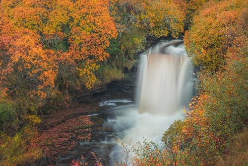 19 km north of Portree, and 5 km south of Mealt falls, it’s a beautiful cascading waterfall located in a gorge off road A855. It’s a short and easy walk from the car park to two viewpoints where you can admire the water falling 90 meters down the gorge to sea level.