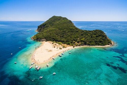 Turtle Island is a summer breeding area of the endangered Caretta-Caretta sea turtles, east of Keriand in Laganas bay, 21 km southwest of Zakynthos town and a short boat ride from the coast. Being part of Zakynthos Marine Park, visitors can stay on the beach only within 5 meter strip. In the islet there are two beaches, one pebbled and one sandy where the Turtles hatches, and sea caves popular for swimming and snorkeling. In the Limni Keri Harbor take a Turtle Spotting glass bottom boat tour to the island.