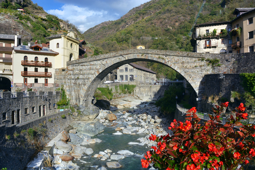 The town in the eastern entrance to the Valle d’Aosta, has a 1st century BC Roman bridge and two Medieval castles in ruins, the Castle of Pont-Saint-Martin and the Castle of Suzey.